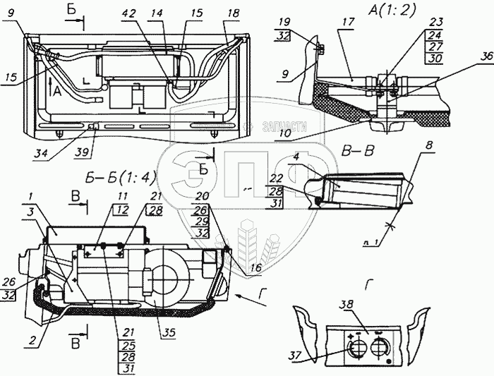 Каталог запасных частей к технике: МТЗ-1221.4. Установка отопителя-охладителя