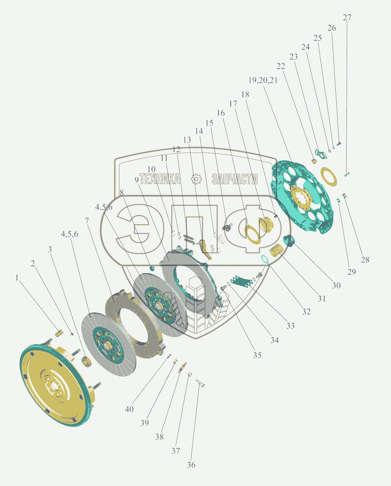 Каталог запасных частей к технике: МТЗ-1221.4. Установка сцепления 260.1-1005009