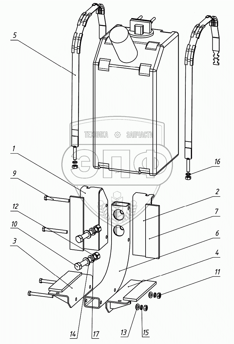 Каталог запасных частей к технике: МТЗ-1221.5. Установка бака