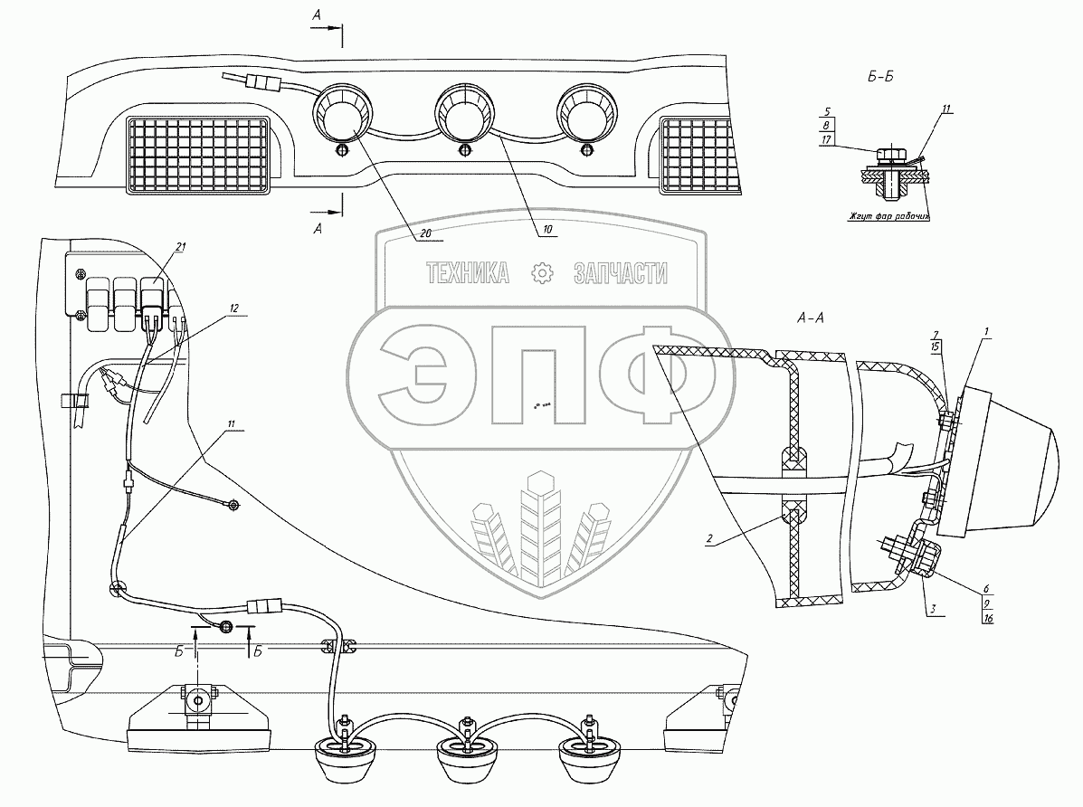 Каталог запасных частей к технике: МТЗ-1221.5. Установка фонарей автопоезда