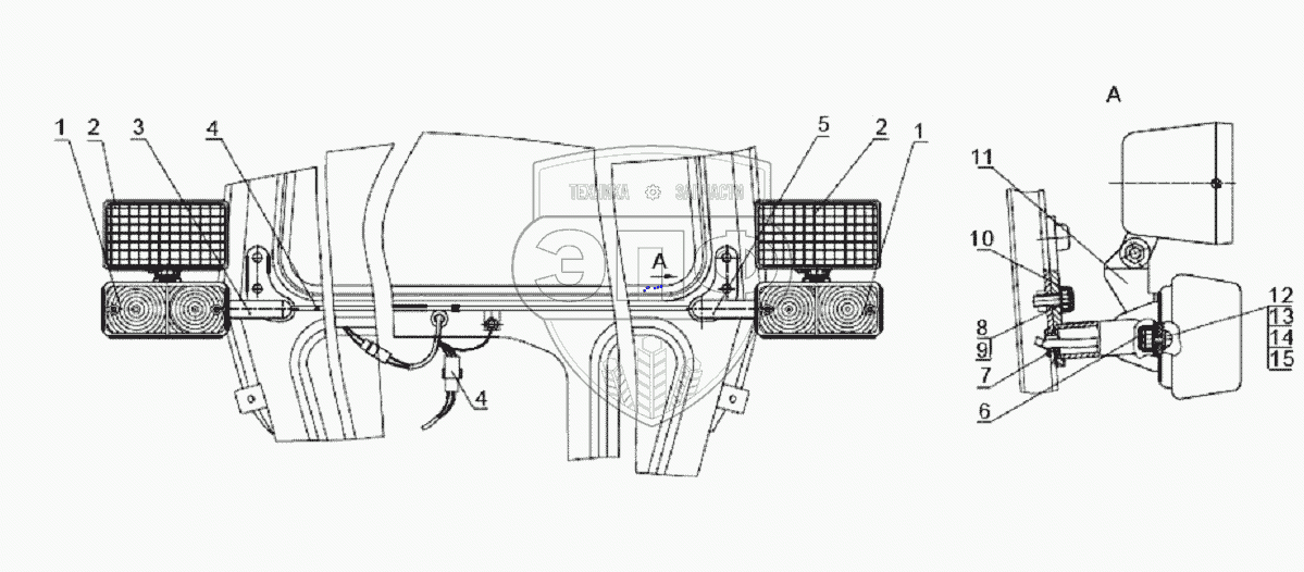 Каталог запасных частей к технике: МТЗ-1221.5. Установка фонарей передних