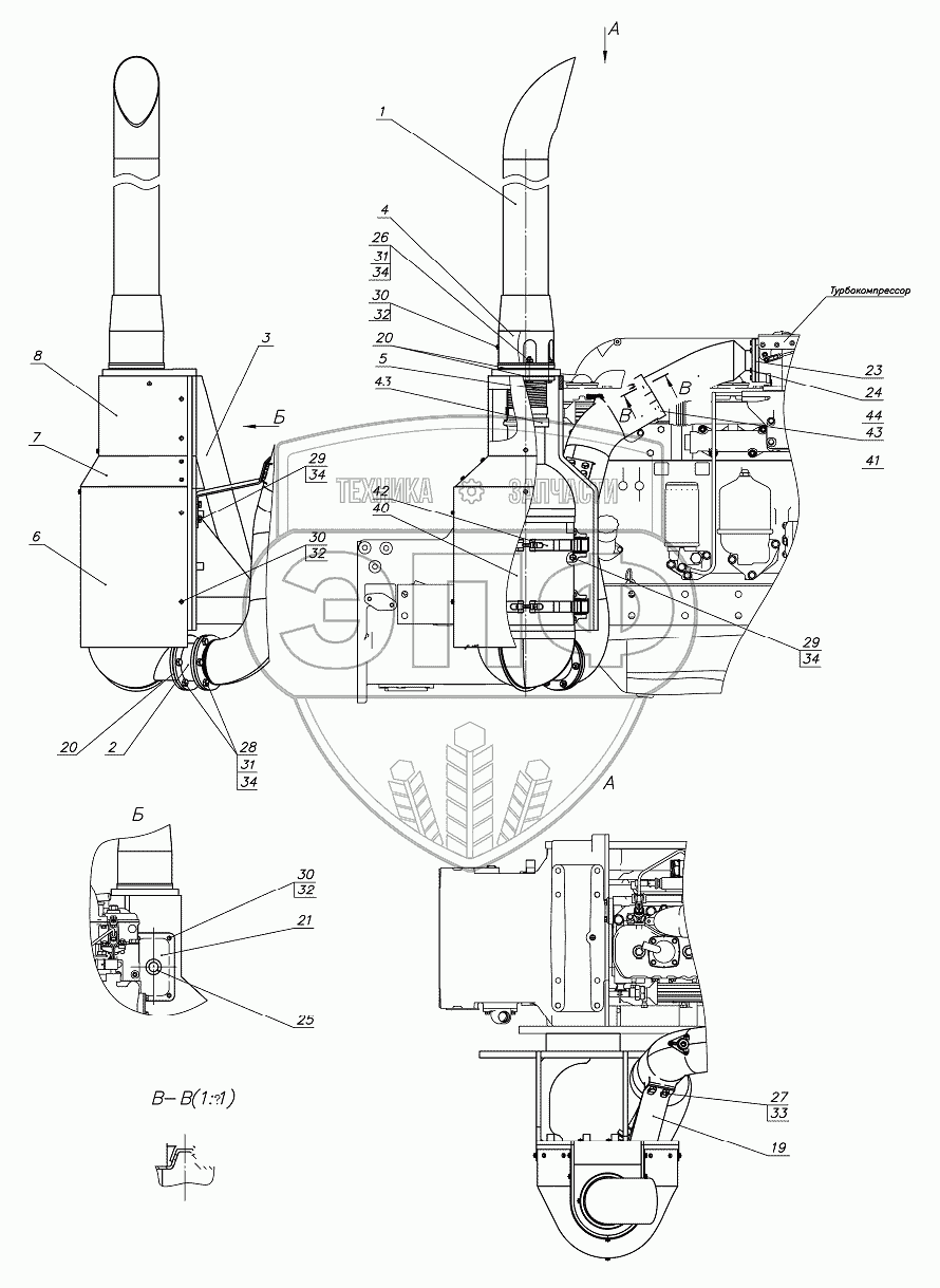 Каталог запасных частей к технике: МТЗ-1221.5. Установка глушителя