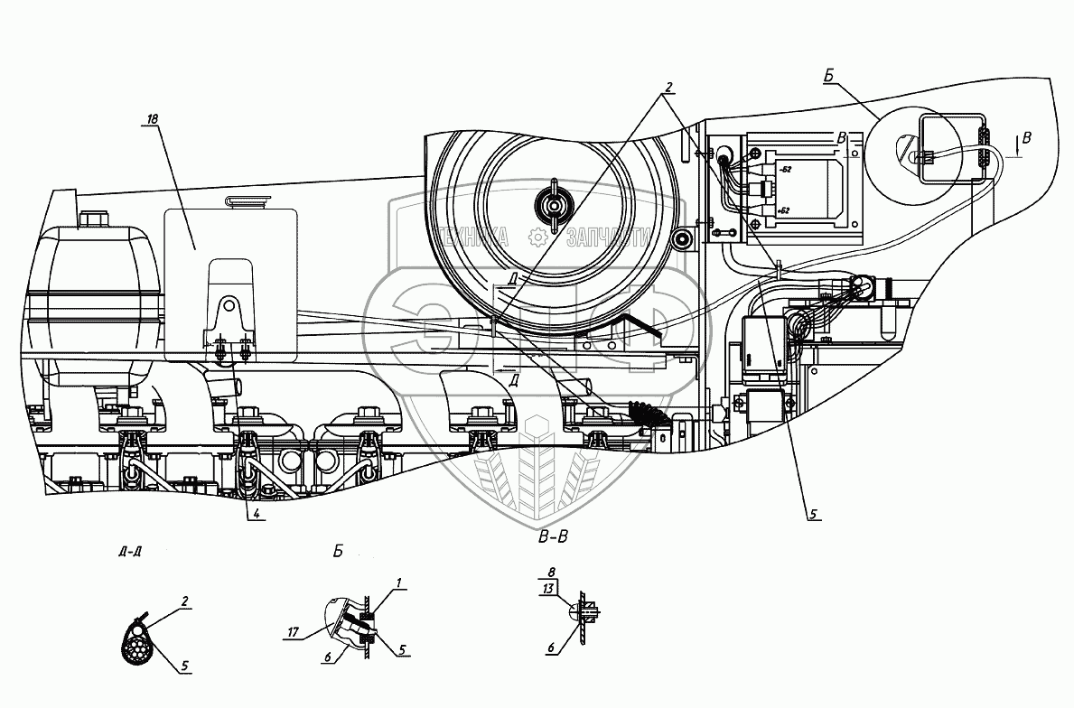 Каталог запасных частей к технике: МТЗ-1221.5. Установка стеклоомывателя