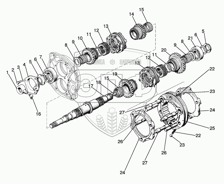 Каталог запасных частей к технике: МТЗ-1221.5. Вал первичный (16F+8R)