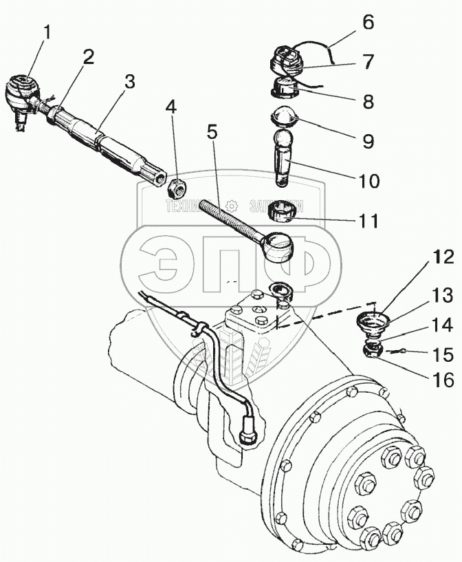 Каталог запасных частей к технике: МТЗ-1221 (2009). Ось передняя. Тяги рулевые