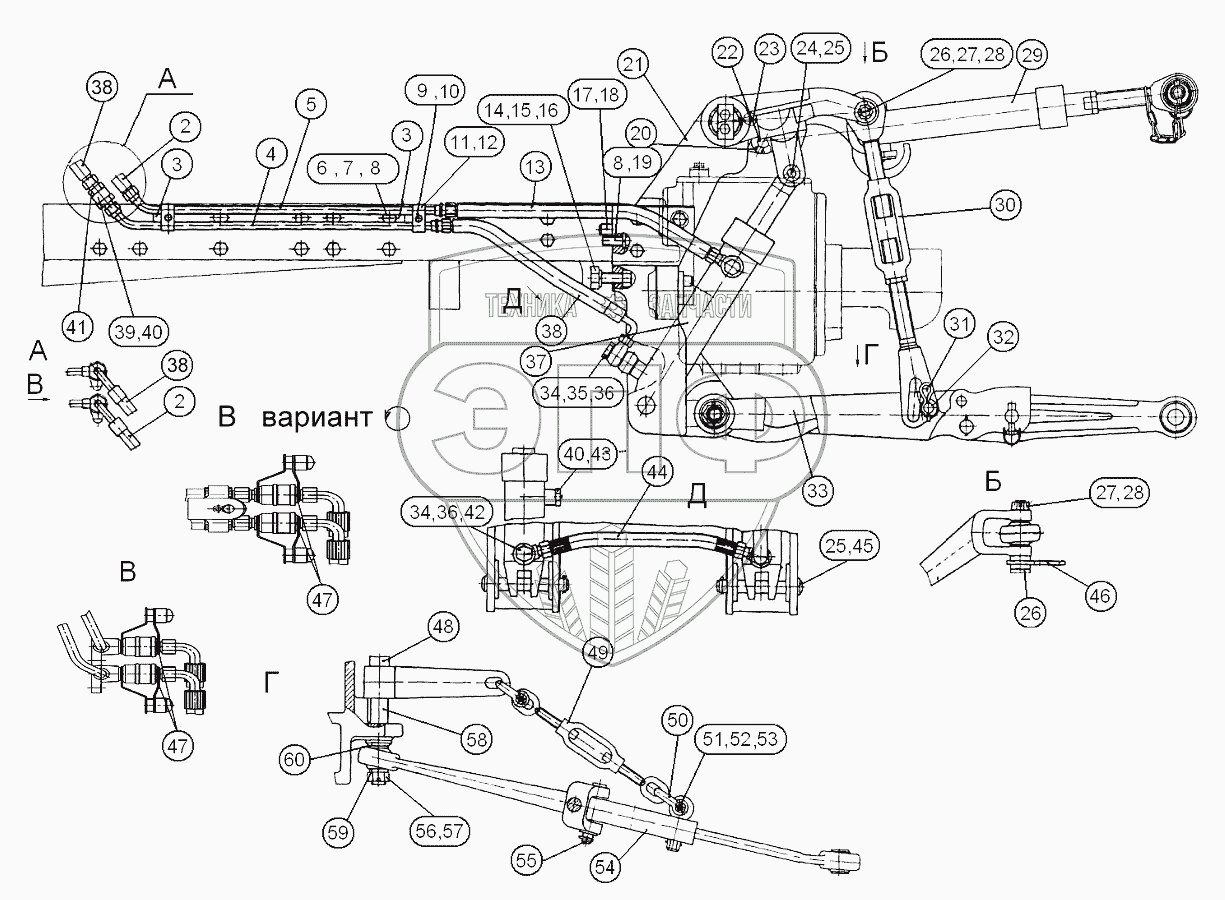 Каталог запасных частей к технике: МТЗ-1221 (2009). Переднее навесное устройство