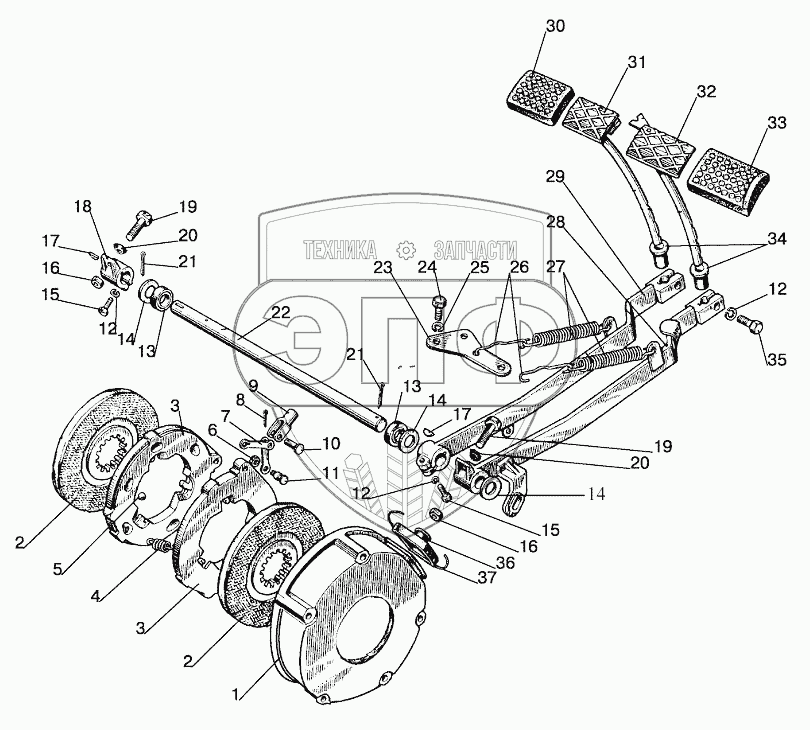 Каталог запасных частей к технике: МТЗ-1221 (2009). Тормоза. Управление тормозами