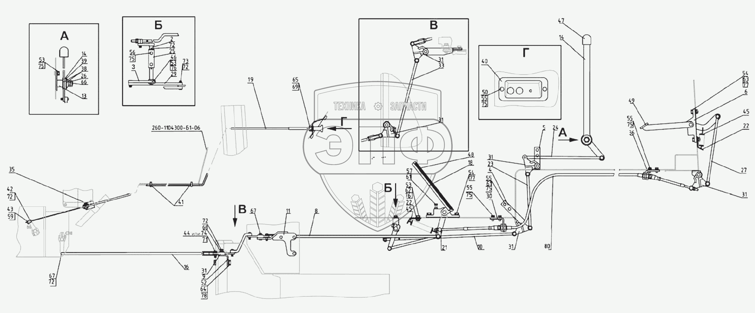 Каталог запасных частей к технике: МТЗ-1221 (2009). Управление подачей топлива (реверс)