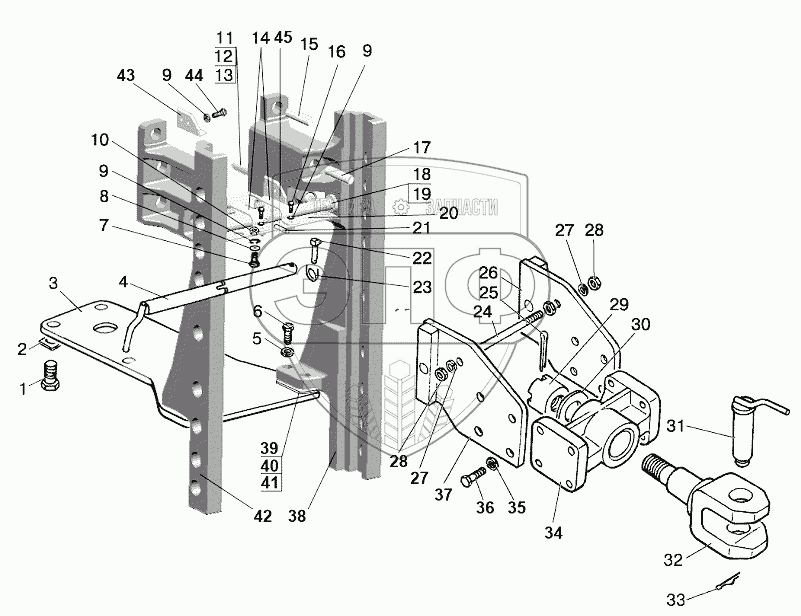 Каталог запасных частей к технике: МТЗ-1221 (2009). Устройство прицепное. Тягово-сцепное устройство