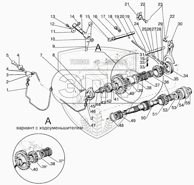 Каталог запасных частей к технике: МТЗ-1221 (2009). Вал пониженных передач