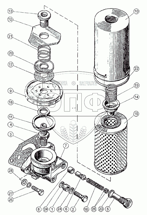 Каталог запасных частей к технике: МТЗ-1222/1523. Установка масляного фильтра