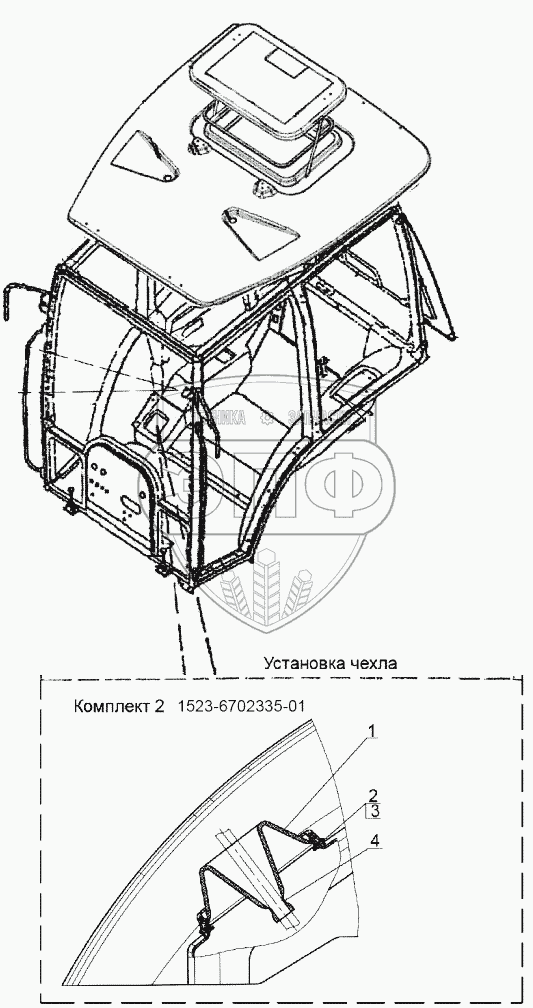 Каталог запасных частей к технике: МТЗ-1523. 1523-6702335-01 Установка чехла