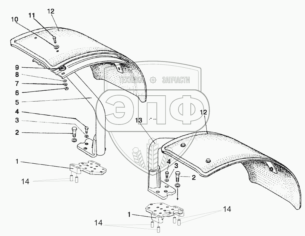Каталог запасных частей к технике: МТЗ-1523. Крылья передних колес