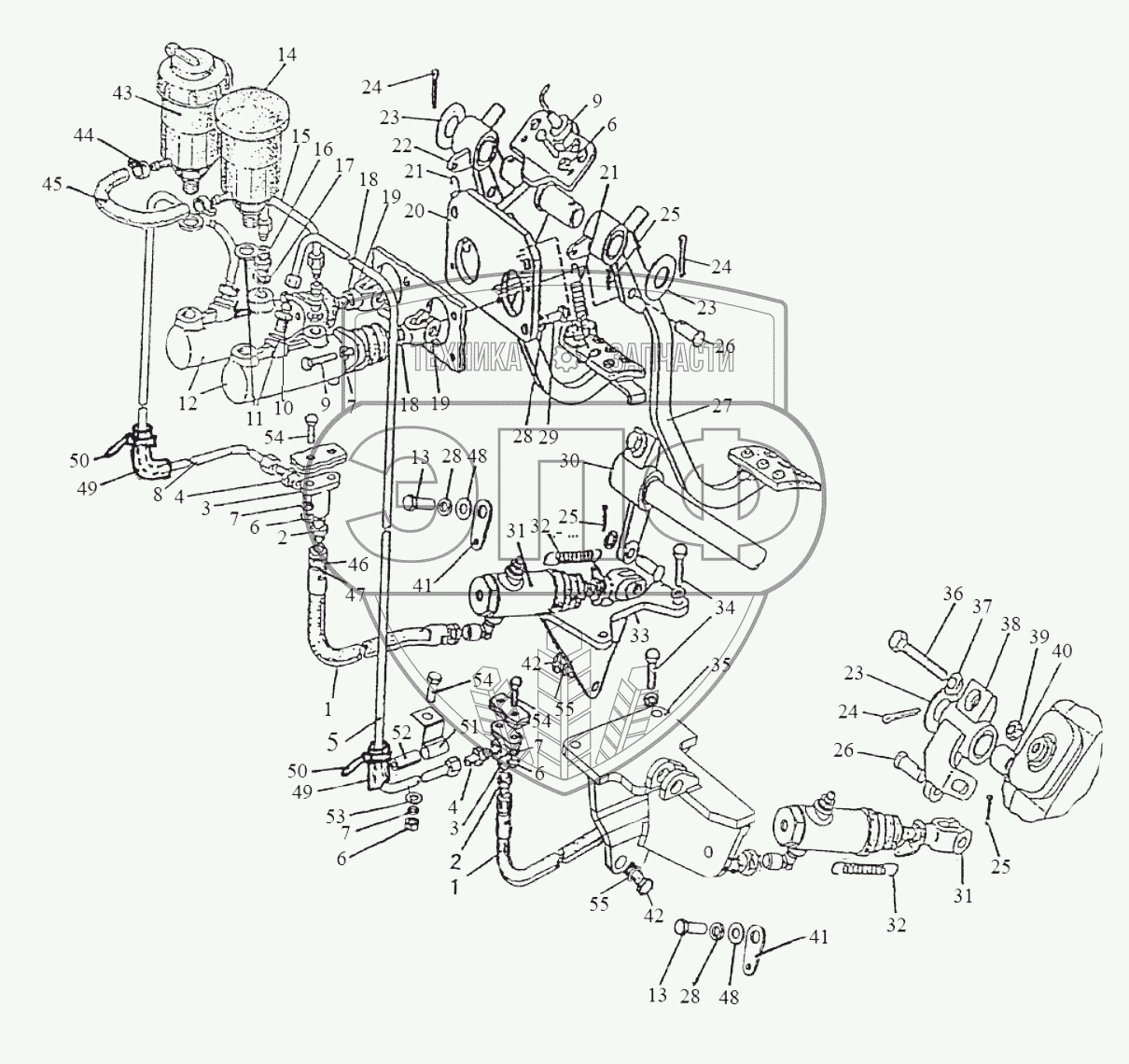 Каталог запасных частей к технике: МТЗ-1523. Управление тормозами