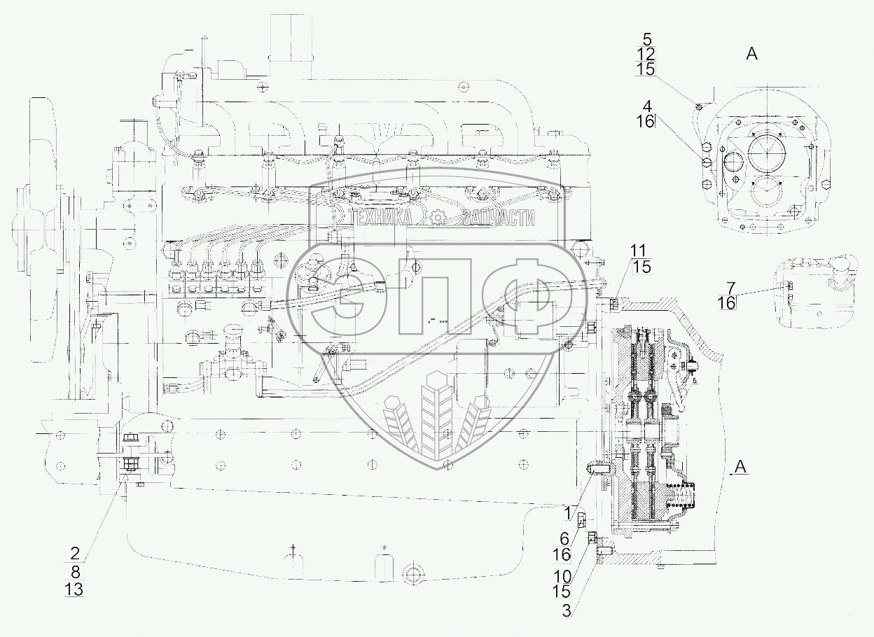 Каталог запасных частей к технике: МТЗ-1523. Установка двигателя