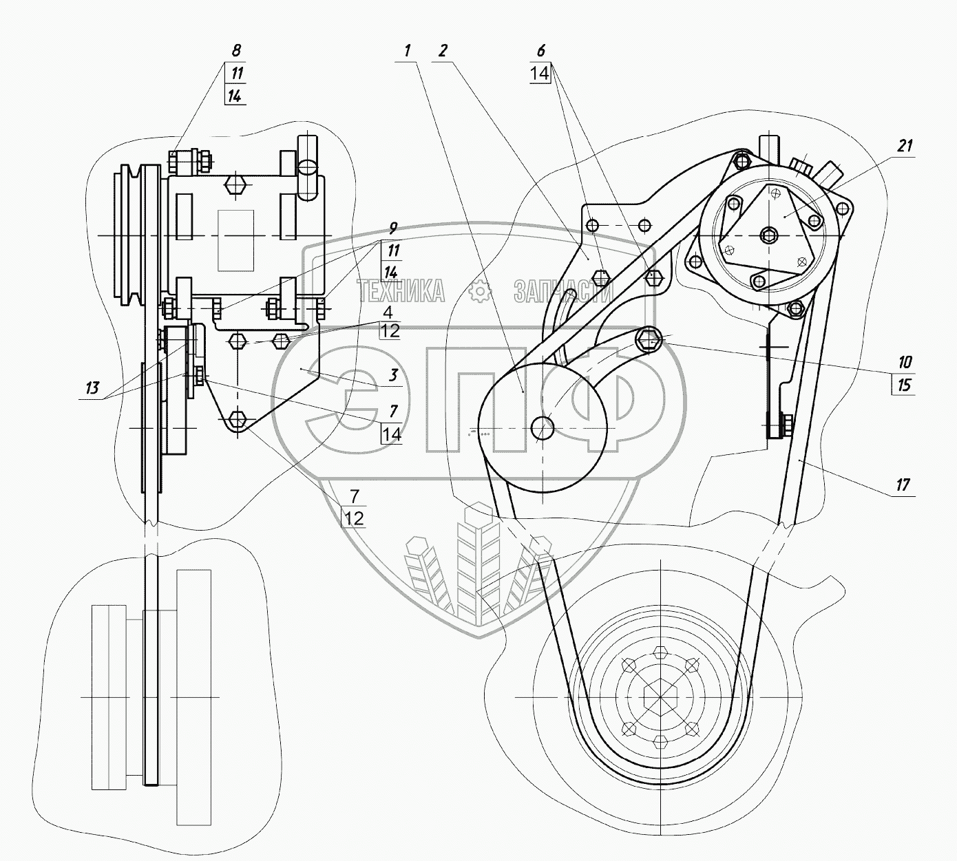 Каталог запасных частей к технике: МТЗ-1523. Установка компрессора