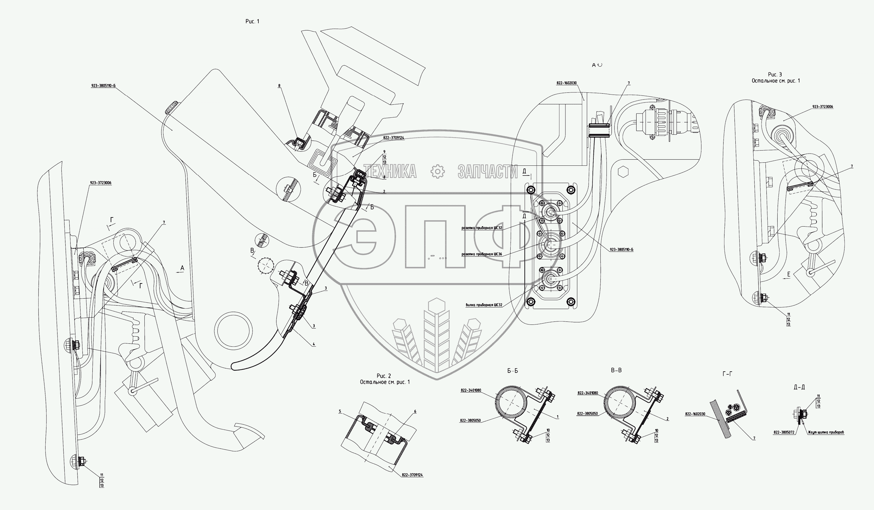 Каталог запасных частей к технике: МТЗ-1523. Установка щитка приборов