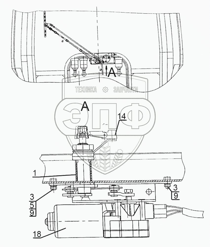 Каталог запасных частей к технике: МТЗ-1523. Установка стеклоочистителя переднего