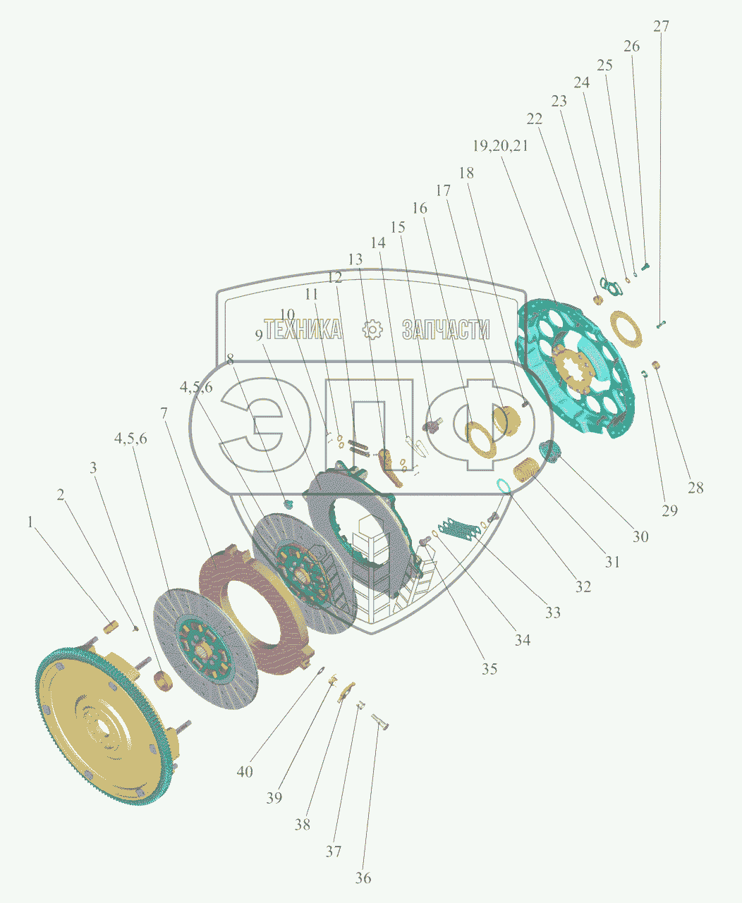 Каталог запасных частей к технике: МТЗ-1523. Установка сцепления 260.1-1005009