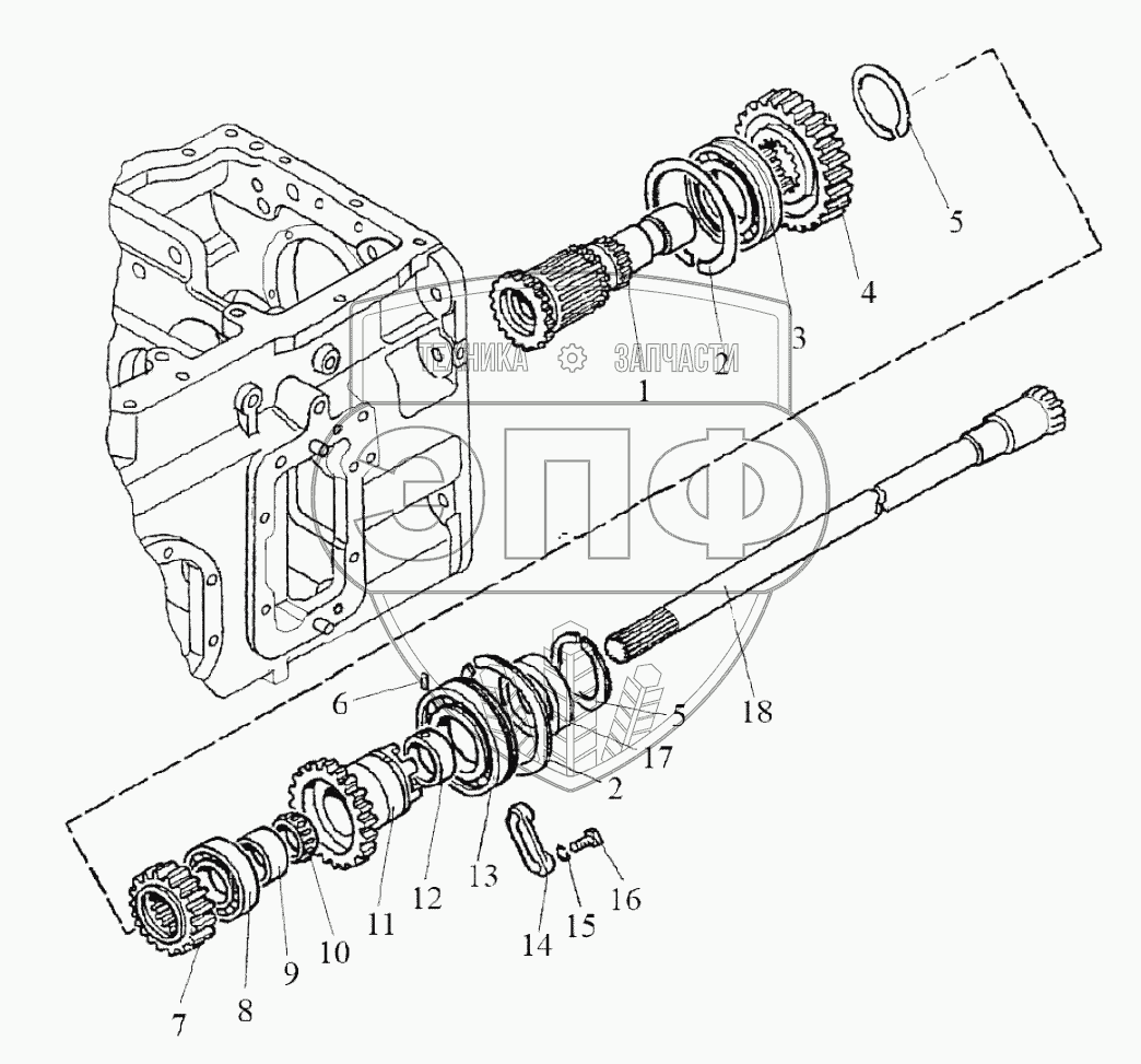 Каталог запасных частей к технике: МТЗ-1523. Вал блока шестерен