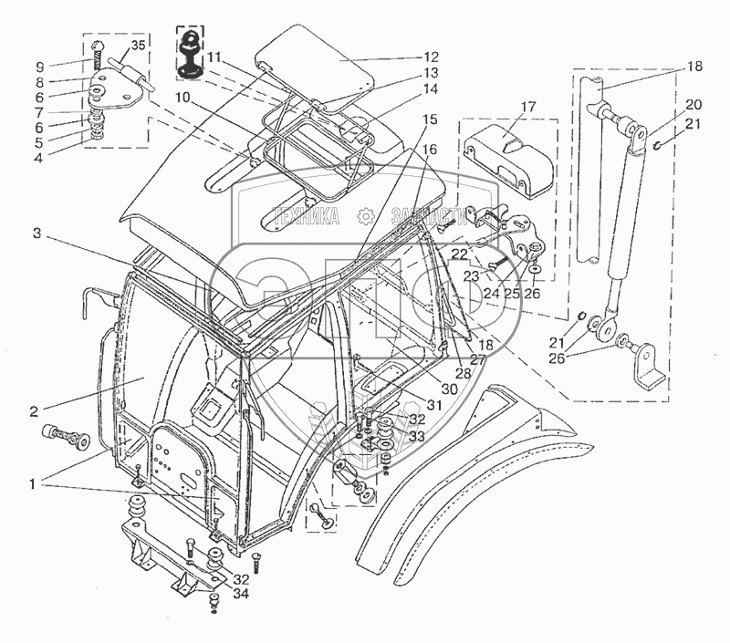 Каталог запасных частей к технике: МТЗ-1523.4. Кабина трактора