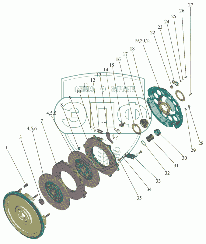 Каталог запасных частей к технике: МТЗ-1523.4. Установка сцепления 1523Д-1005009