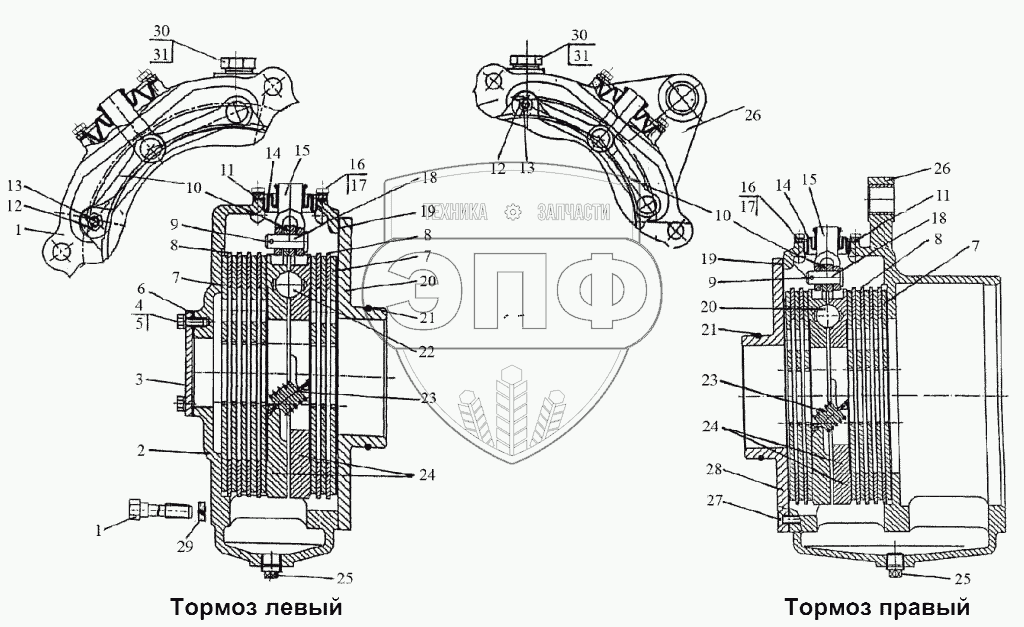 Каталог запасных частей к технике: МТЗ-1523.6. Тормоза «мокрые»