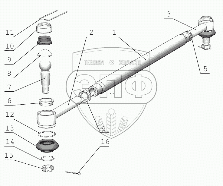 Каталог запасных частей к технике: МТЗ-1523.6. Тяга рулевая