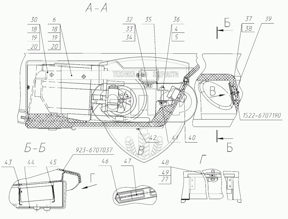 Каталог запасных частей к технике: МТЗ-1523.6. Установка отопителя-охладителя