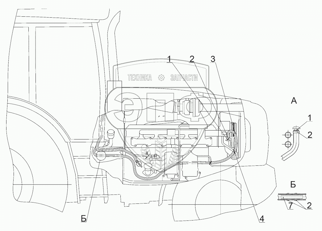 Каталог запасных частей к технике: МТЗ-1523.6. Установка шлангов отопителя