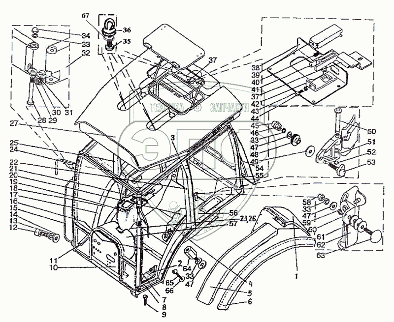 Каталог запасных частей к технике: МТЗ-2522. Кабина, крылья задние