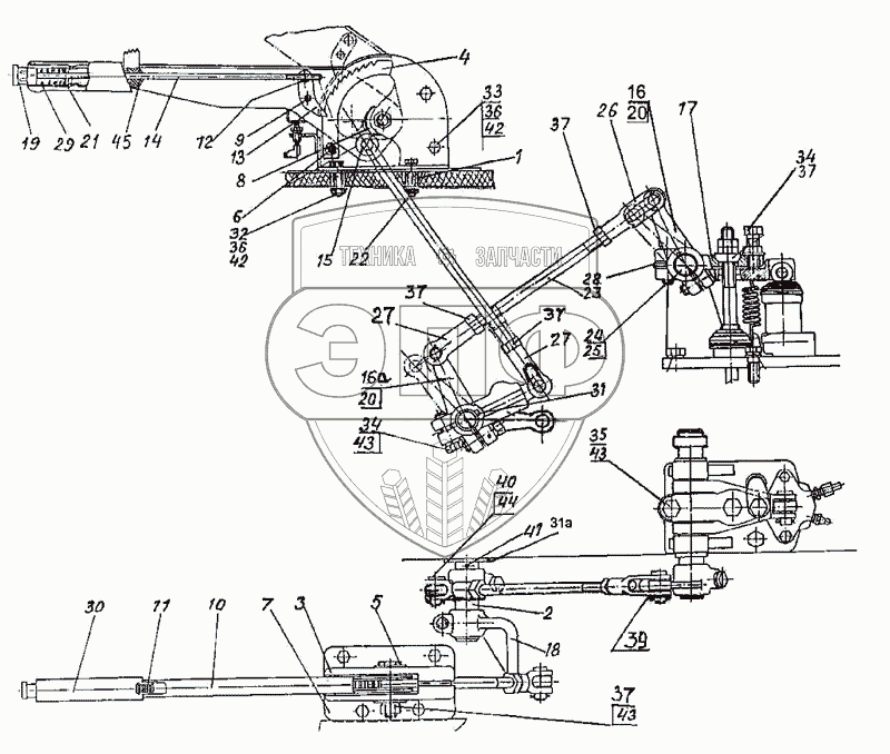 Каталог запасных частей к технике: МТЗ-2522. Управление стояночным тормозом