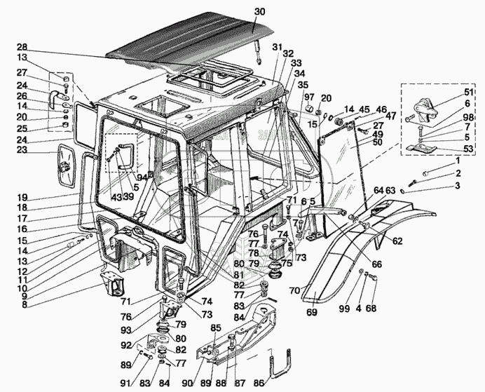 Каталог запасных частей к технике: МТЗ-570. Кабина трактора. Крылья задние