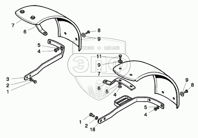 Каталог запасных частей к технике: МТЗ-570. Крылья передние (с передней осью)
