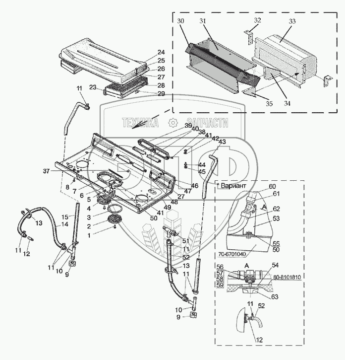 Каталог запасных частей к технике: МТЗ-570. Отопитель