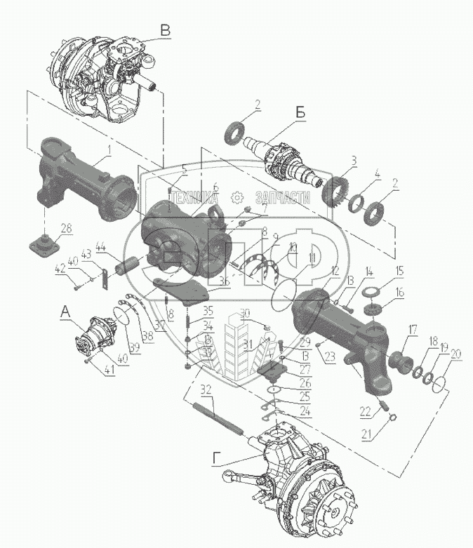 Каталог запасных частей к технике: МТЗ-570. Передний ведущий мост 822-2300020