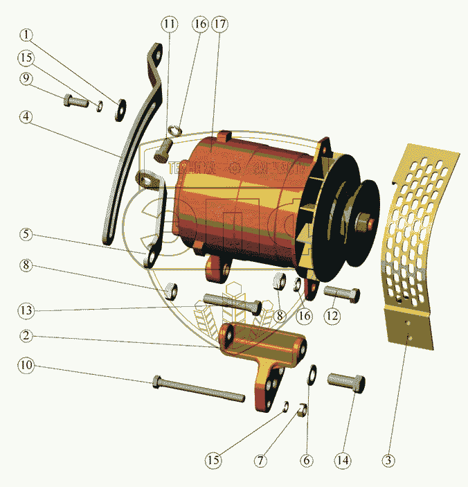 Каталог запасных частей к технике: МТЗ-570. Установка генератора