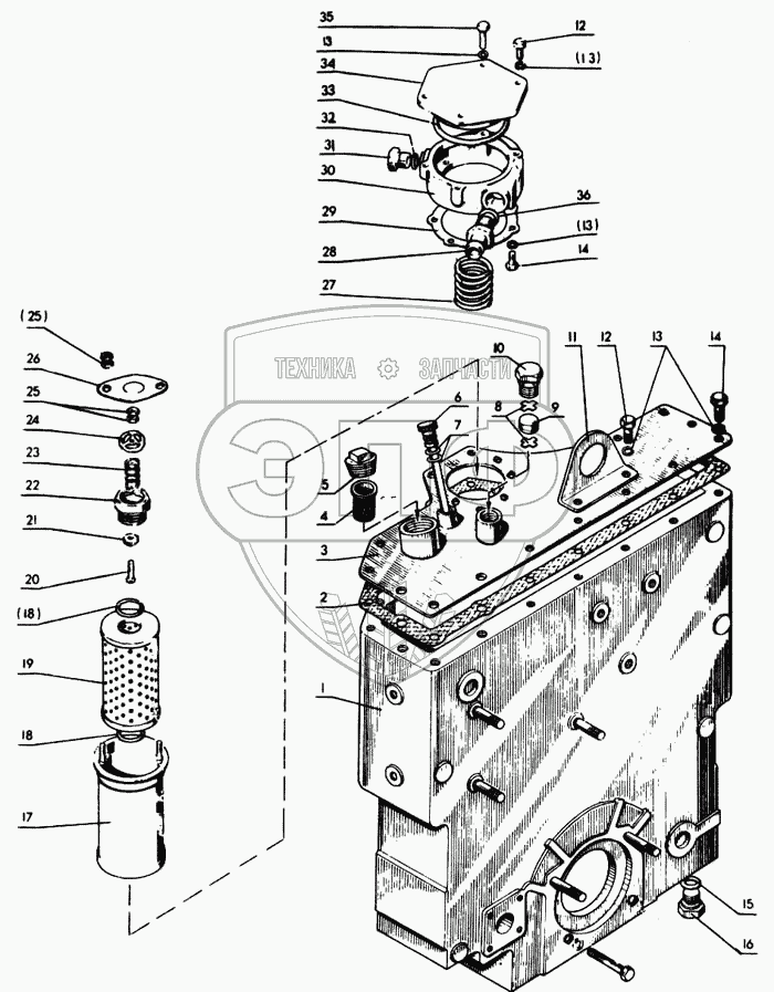 Каталог запасных частей к технике: МТЗ-80. Корпус гидроагрегатов, фильтр