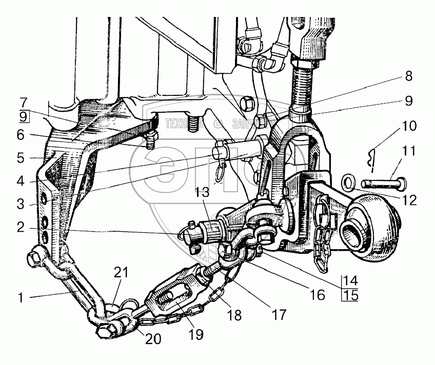 Каталог запасных частей к технике: МТЗ-80.1. Наружная блокировка нижних тяг
