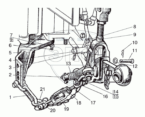 Каталог запасных частей к технике: МТЗ-826. Наружная блокировка нижних тяг