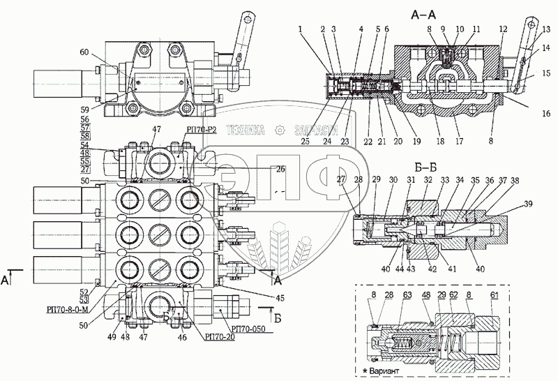 Каталог запасных частей к технике: МТЗ-900/920/950/952. Гидрораспределитель РП70