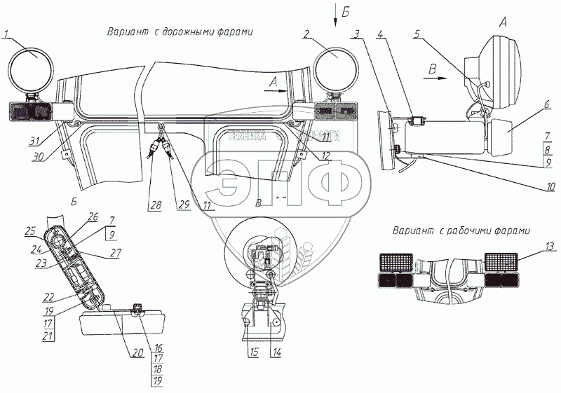 Каталог запасных частей к технике: МТЗ-900/920/950/952. Установка фонарей передних