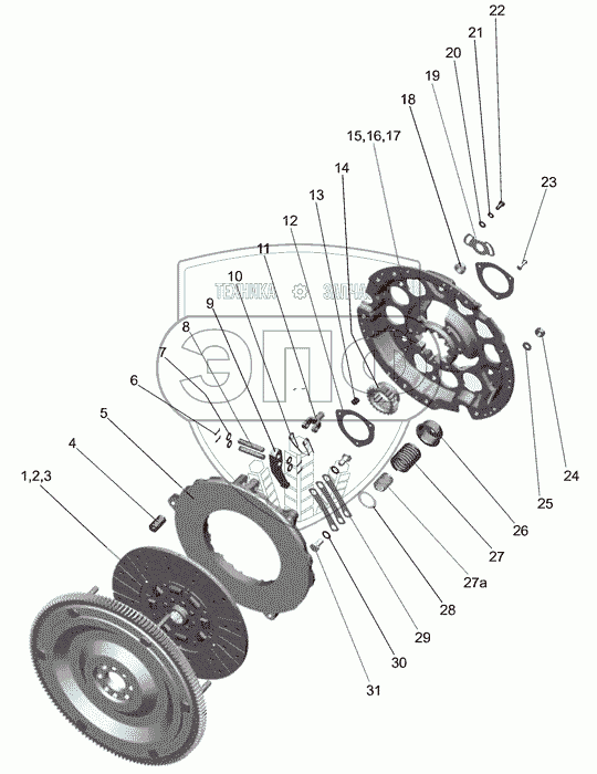Каталог запасных частей к технике: МТЗ-900/920/950/952. Установка сцепления