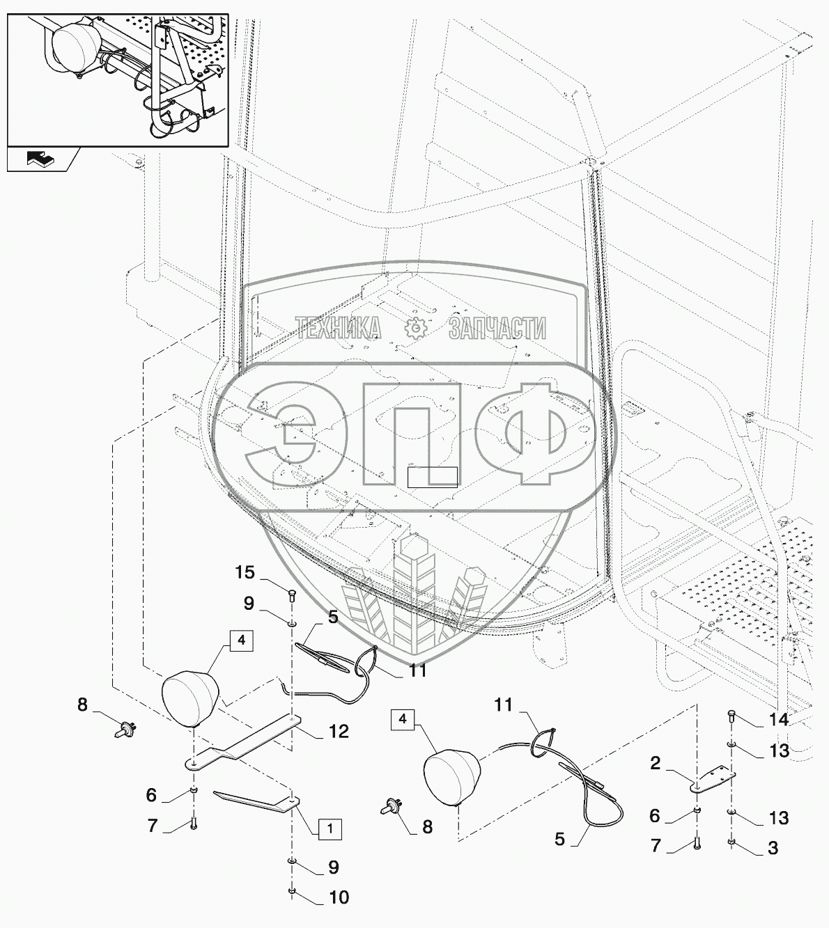Каталог запасных частей к технике: New Holland CSX7080 (D660). STANDARD HEADLIGHTS, FRONT