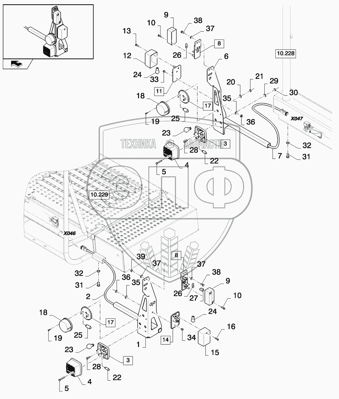 Каталог запасных частей к технике: New Holland CSX7080 (D660). STANDARD HEADLIGHTS, FRONT
