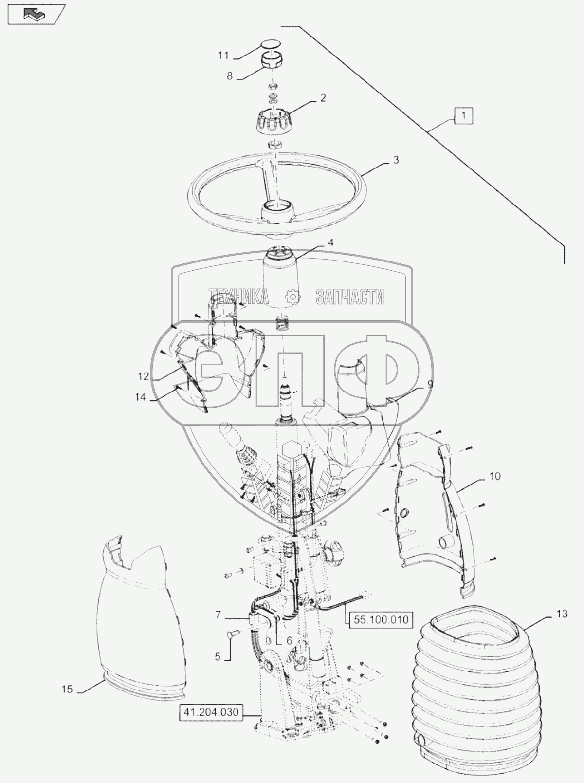 Каталог запасных частей к технике: New Holland Комбайн CR9080 E3 (часть 1). STEERING COLUMN