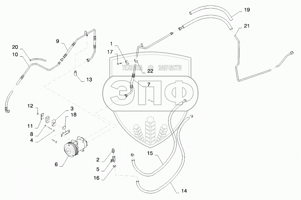 Каталог запасных частей к технике: New Holland T8. AIR CONDITIONING, COMPRESSOR