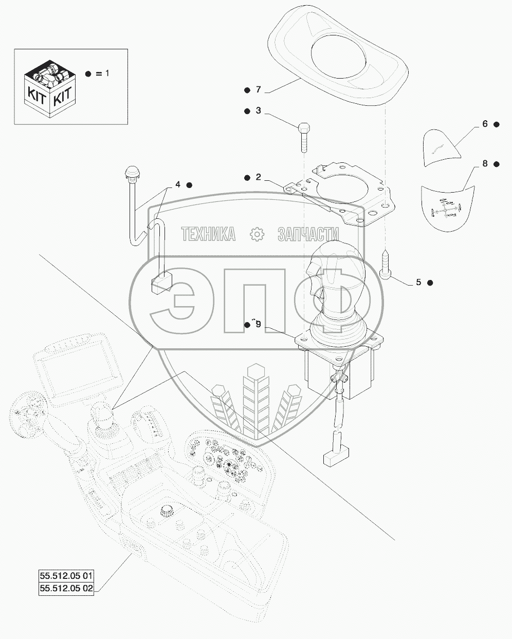 Каталог запасных частей к технике: New Holland T8. DIA KIT, JOYSTICK