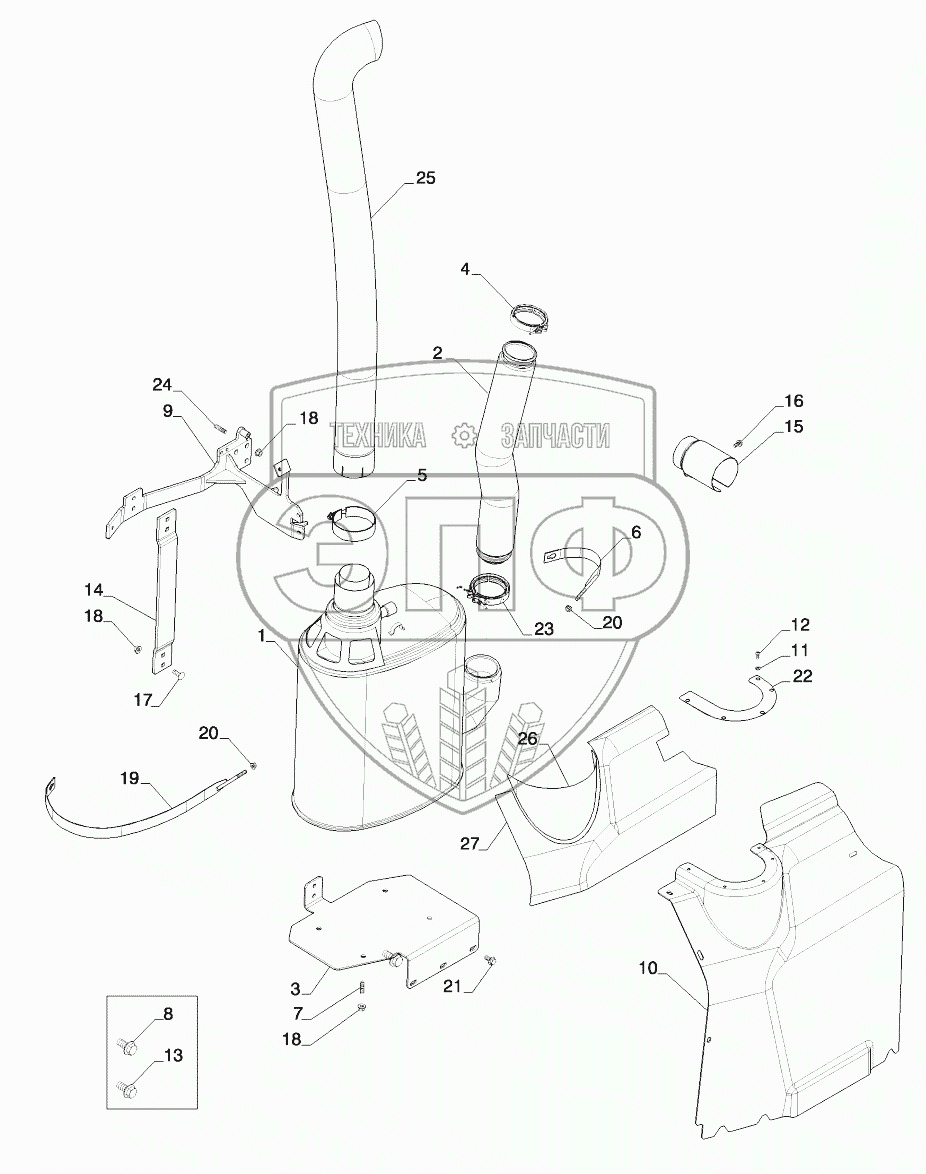 Каталог запасных частей к технике: New Holland T8. EXHAUST SYSTEM, T2