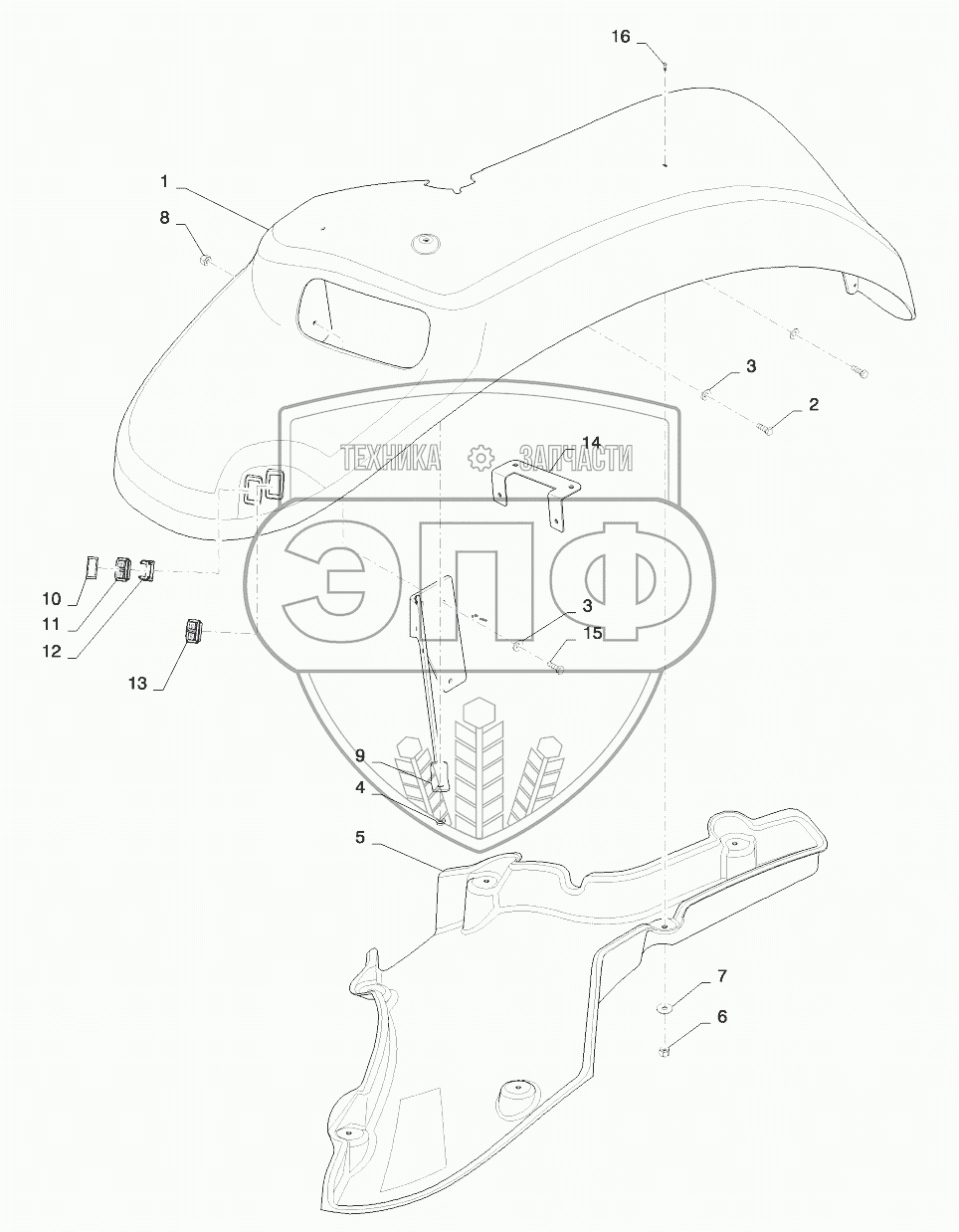 Каталог запасных частей к технике: New Holland T8. FENDERS - REAR, NARROW